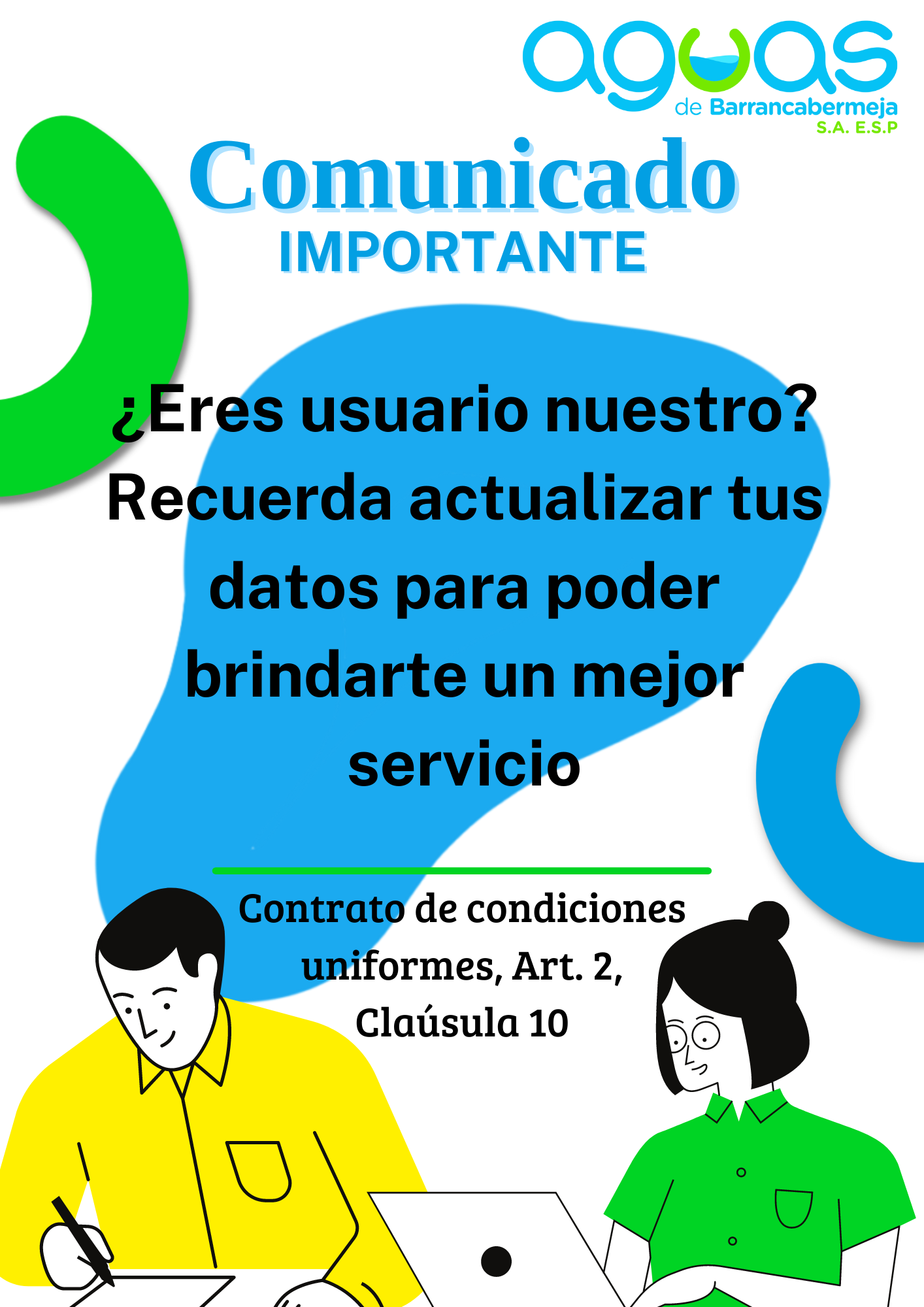 En cumplimiento a la Ley 1712 del 6 de marzo de 2014: "Ley de transparencia y del derecho de acceso a la información pública”, del Decreto 103 de 2015 y de la Resolución 3564 de 2015, AGUAS DE BARRANCABERMEJA pone a disposición de la ciudadanía la siguiente información.